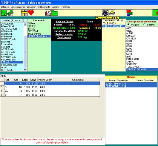 Il permet, en plus de l’optimisation des débits, une gestion approfondie des chutes lors des débits. Les chutes ainsi gérées pourront être réutilisées pour des débits ultérieurs. À la gestion des chutes se rajoute une gestion des stocks de barres et de plaques en fonction des débits à réaliser.