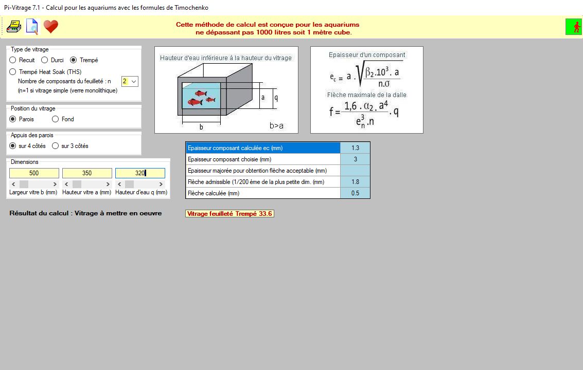 Les différents modules proposés vous permettent ainsi d’effectuer des calculs d’épaisseurs de vitrage selon leur fonctionnalité finale (aquarium, bassins, étagères, …).