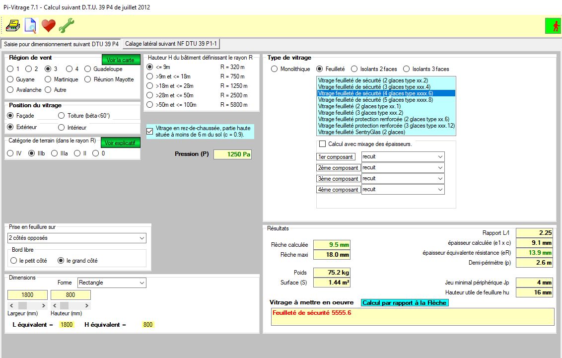 Logiciel de calcul d’épaisseur de vitrage en fonction du DTU 39.